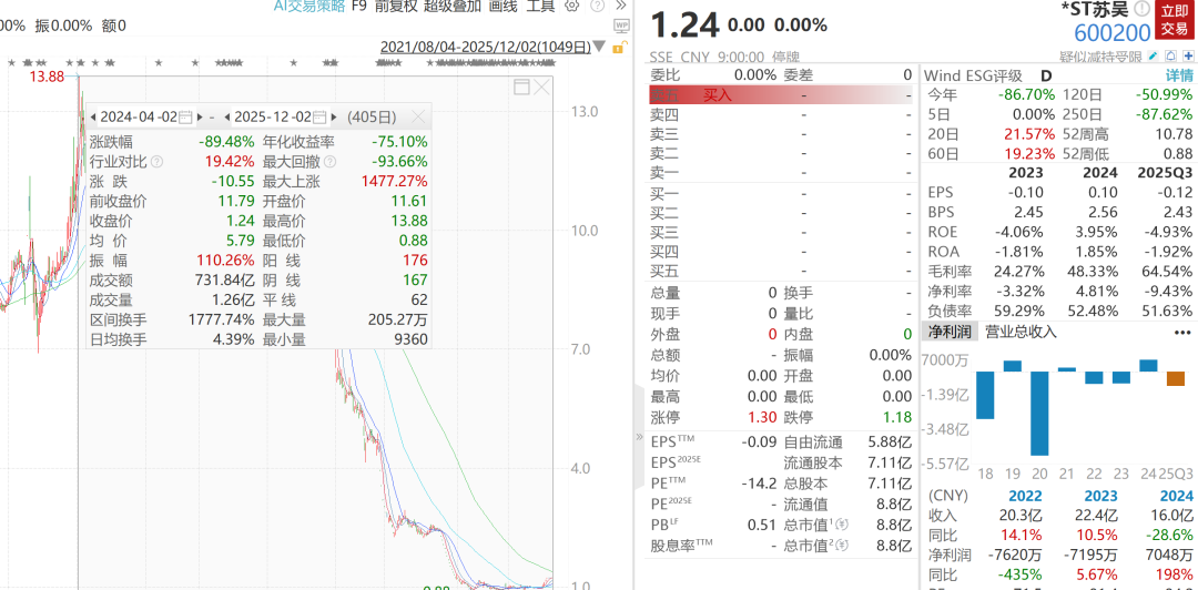 12月1日,江苏吴中医药发展股份有限公司(*ST苏吴(600200);600200.SH)发布公告称,公司已于12月1日收到上海证券交易所《关于江苏吴中医药发 展股份有限公司股票终止上市的决定》。根据该决定,公司股票自12月9日起进入为期15个交易日的退市整理期,预计最后交易日为12月29日。退市整理期 届满后5个交易日内,上交所将对公司股票予以摘牌,公司股票终止上市。 来源:*ST苏吴公告 此次退市决定源于中国证监会于11月25日下发的《行政处罚决定书》(〔2025〕145号)。该处罚书认定,*ST苏吴在2020年至2023年连续四年年度报告中 存在虚假记载,包括虚增营业收入合计17.71亿元、虚增利润总额7599.75万元,并未披露关联方非经营性资金占用,截至2023年末占用余额高达16.93亿元, 占净资产比例达96.09%。上述行为构成《上海证券交易所股票上市规则(2025年4月修订)》第9.5.2条第一款第(六)项规定的重大违法强制退市情形。 早在2025年2月26日,*ST苏吴即因涉嫌信息披露违法违规被中国证监会立案调查。同年5月,公司董事长钱群山被单独立案。7月13日,公司收到《行政处 罚事先告 ...