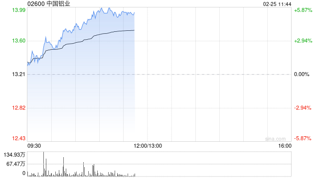 铝业股午前继续走高 中国铝业涨超5%南山铝业国际涨超4%