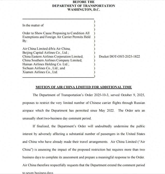 【文/观察者网 邓军 编辑/赵乾坤】 近日,特朗普政府拟禁止中国航空公司在执飞往返美国航班时飞越俄罗斯领空的消息,引发了中美民航 业界高度关注。 据国际航空行业媒体Flightglobal最新报道,日前,中国国际航空、北京首都航空、中国东方航空、中国 南方航空、海南航空、四川航空和厦门航空共同签署了一封致美国交通部(DOT)的信函,要求美国 交通部给予更多时间回复评议,以便航空公司有更多时间评估迅速停止穿越俄罗斯领空的美国航班对运 营造成的影响。七家中国航司一致认为,该禁令一旦实施,必将损害公共利益,并严重扰乱已预订航班 的中美旅客的出行计划。 报道还援引中国国际航空方面的消息称,美国交通部的文件设定了异常短暂的两个工作日评议期。中国 国航正在评估拟议限制措施的影响,但完成评估并准备实质性回应需要比两个工作日更长的时间。因 此,中国国际航空已提交动议,希望美国交通部将评议期延长至七个工作日。 中国国航 民航评论员张仲麟对观察者网表示,预计中国航司即便停飞中美航线,也不会向美国交通部此项禁令妥 协,此举对于日韩这种中转国家而言可能是一种利好。 "如果这个时候中国航司向美国交通部的这种无理要求妥协,其后续将会处于 ...