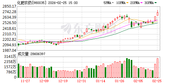 2月25日,化肥农药板块再度拉升。化肥农药指数盘中一度涨超4%。川金诺"20CM"涨停,赤天化、云 天化、六国化工、司尔特、金正大等涨停。 消息面上,尿素、硫酸钾复合肥、磷酸一铵等主流品种价格上涨。其中,数据显示,2月24日,磷酸一 铵(55%粉状)市场价达到3850元/吨,同比上涨16.67%。 业绩亏损的上市公司,主要面临原材料涨价等问题。六国化工预计,2025年度实现归属于母公司所有者 的净利润为-4.8亿元至-4.1亿元。对于业绩预亏的主要原因,六国化工在2025年业绩预告中提到,公司 生产所需大宗原材料以外购为主,主要原料采购价格同比显著上涨。其中,磷矿价格维持高位;国际硫 磺价格持续攀升,带动国内硫磺、硫酸采购成本同比大幅上涨;钾肥采购价格同比明显上涨,导致公司 磷肥产品成本同比大幅上升。 金正大证券部工作人员回应中国证券报记者称,春夏两季是化肥行业传统销售旺季。目前,行业整体处 于季节性景气周期。从现在开始,未来100天左右都是行业的销售旺季。除了旺季影响外,本轮涨价和 原材料价格上涨有一定关系。化肥行业的原材料主要包括磷矿、磷酸、硫酸、尿素等。公司有磷矿,但 是目前还没有开采。原材料主要靠外购 ...