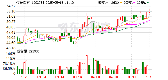 【导读】恒瑞医药启动港股全球招股 中国基金报记者卢鸰 据悉,恒瑞医药基石投资者按发售价认购或促使其指定实体认购可购入的若干数目的发售股份,以发行 价中端计算,总金额逾41亿港元(约5.33亿美元),认购金额占比达发行规模的43.04%(假设超额配售 权及发售量调整权未行使)。 在业内人士看来,赴香港上市是恒瑞医药出海战略的关键一步。首先,香港资本市场的国际投资者基础 广泛,有助于提升公司在全球医药行业的品牌影响力;其次,此次港股上市可进一步优化资本结构并开 拓新的融资渠道,为公司多元化融资提供助力;最后,赴港上市有助于公司拓展海外业务和国际研发合 作,增强国际布局,进一步实现海外市场的突破,提升公司的全球竞争力。 数据显示,2024年,恒瑞医药的海外收入占比仅为2.56%,百济神州的海外收入占比则高达62.85%。 5月15日早盘,恒瑞医药股价平开,截至记者发稿,公司股价为52.99元,微涨0.17%。 (文章来源:中国基金报) 恒瑞医药5月15日早间发布公告称,公司正式启动H股全球公开发售,计划发行约2.25亿股H股(假设超 额配售权及发售量调整权未行使),其中,香港公开发售占比为5.5%,国际配售占比为9 ...