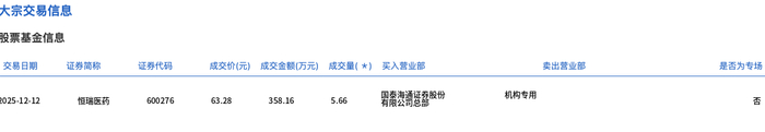 小摩增持恒瑞医药387.9413万股 每股作价72.5974港元