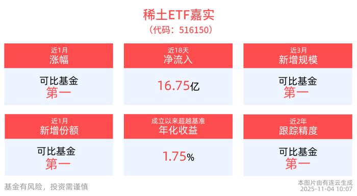 稀土供需共振可期,稀土ETF嘉实(516150)近3月规模增长同类居首!