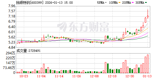 抚顺特钢成交额创2024年10月22日以来新高