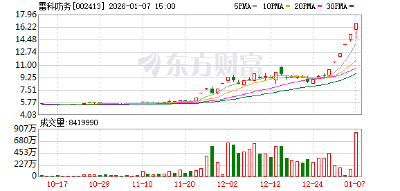 上天天基金APP搜索777注册即可领500元券包,优选基金10元起投!限量发放!先到先得! 1月7日,A股三大指数震荡调整,收盘集体上涨。 上证指数微涨0.05%,收获14连阳, 盘中 逼近4100点 ;深证成指涨0.06%,创业板指涨0.31%。 全市场成交额超2.88万亿元,较上一交易日增加493亿元,超2100只个股上涨。 从盘面上看, 光刻胶、煤炭开采加工、存储芯片、光刻机、可控核聚变等板块涨幅居前 ,脑机接 口、互联网保险等板块集体调整。 今日盘中,近期大热的商业航天板块活跃。邵阳液压、广钢气体、盛邦安全"20CM"涨停;城建发 展"4连板",银河电子、南京熊猫、普利特"3连板",江顺科技、远东股份、金风科技"2连板"。 今日,雷科防务收获"6连板",冲上A股热股榜第一名。收盘报16.71元/股,总市值超220亿元。 该股 自2025年11月24日启动上涨行情,截至今日收盘,区间累计涨幅已超188%。 东方证券认为,上证指数逼近4100点整数关口, 技术层面来看, 预计后市上行速度将有所放缓, 不排除大幅震荡可能;未来产业仍是关注焦点,但需要提防部分个股大幅炒作后的调整风险,板块 1月6日晚间,雷科 ...