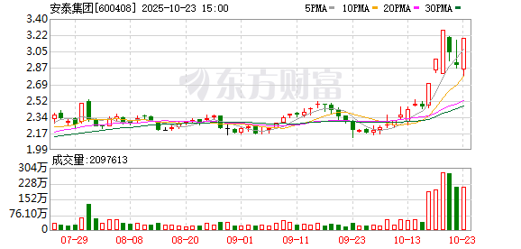 近日该股表现 | 日期 | 当日涨跌幅(%) | 换手率(%) | 主力资金净流入(万元) | | --- | --- | --- | --- | | 2025.10.22 | -4.29 | 21.02 | -538.20 | | 2025.10.21 | -7.34 | 27.21 | -8902.24 | | 2025.10.20 | 10.10 | 28.07 | -4227.39 | | 2025.10.17 | 10.00 | 19.72 | -1998.83 | | 2025.10.16 | 10.20 | 18.86 | 5648.29 | | 2025.10.15 | -1.21 | 3.90 | -1334.42 | | 2025.10.14 | 2.48 | 5.43 | -1636.10 | | 2025.10.13 | 2.11 | 4.91 | -1038.72 | | 2025.10.10 | 2.60 | 5.23 | -2398.93 | | 2025.10.09 | 2.21 | 3.01 | 321.60 | (文章来源:证券时报网) 安泰集团再度涨停,6个交易日内录得4 ...