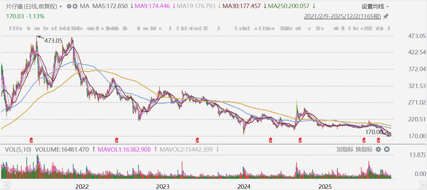 跌落神坛!“药茅”片仔癀股价创逾5年新低,市值较高位蒸发超60%