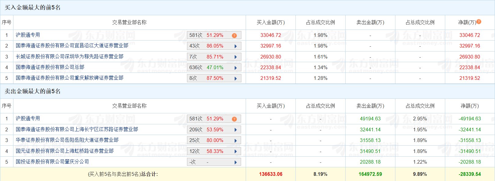 龙虎榜丨烽火通信涨7.99%创新高,徐晓卖出3.15亿元,沪股通净卖出1.62亿元