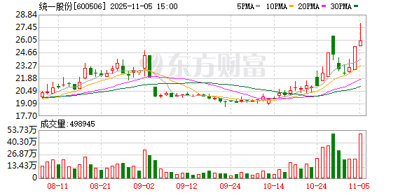 统一股份换手率24.82%,上榜营业部合计净买入1963.54万元