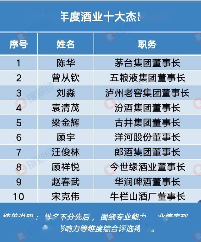 瑞财经 1月13日,由瑞财经推出的"2025年度酒业十大杰出人物"榜单揭晓,茅台集团董事长陈华入选。 陈华,1972年3月出生,大学,工程硕士、工商管理硕士。现任中国贵州茅台酒厂(集团)有限责任公 司党委书记、董事长,贵州茅台酒股份有限公司党委书记、董事长。陈华曾历任盘江矿务局土城矿采矿 四区助理工程师;盘江煤电(集团)有限公司土城矿采矿二区技术主管,采矿三区助理工程师,采矿四区技 术主管、副区长;贵州盘江马依煤业有限公司副总经理;盘江精煤股份有限公司土城矿副矿长、矿长; 盘江投资控股(集团)有限公司副总经理;贵州林东矿业(集团)有限责任公司副董事长、总经理、党委 副书记,林东煤业发展股份有限公司董事、总经理、党委委员(兼);贵州省安全生产监督管理局副局 长、党组成员,贵州煤矿安全监察局党组成员;贵州省六盘水市副市长;贵州盘江国有资本运营有限公 司副董事长、总经理、党委副书记;贵州盘江煤电集团有限责任公司副董事长、总经理、党委副书记, 党委书记、董事长、总经理,党委书记、董事长;贵州省能源局局长、党组书记。 2025年,在陈华带领下,茅台集团在行业调整期稳扎稳打,在经营业绩、科技创新、渠道变革、文化传 播和社 ...