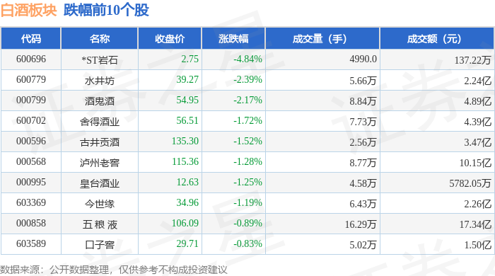 白酒板块1月15日跌0.77%,*ST岩石领跌,主力资金净流出11.52亿元