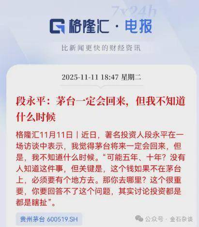 最近,段永平言论火了,先是捐款1500万股茅台股票,后又 捐赠2.2亿元给母校北师大。而更让资本市场关心的是他的 个人经历与投资理念。 关于茅台他提到,持仓茅台近4年已腰斩,但相信茅台一定会回来。可能5年,十年,但如果这个钱不放茅台,必须有地方去。 2021年茅台股价达2600-2700元时,曾因"觉得贵"想减持,但最终因"找不到更好的替代标的"选择持有。 段永平提出"茅台和其他白酒是两个东西"的观点,看重其独特口味与文化壁垒。"喜欢喝茅台的人认这个口味,茅台的稳定性很强。 他认为,茅台还是会有人喝。很多人说年轻人不喝茅台了,可那些不年轻的人还能活很久。其次,年轻人一直不喝茅台,以后谁知道他们会不会喝?喝酒 有害健康,这是真的,但它有情绪价值,所以还是会有人喝。 段永平认为,投资茅台肯定比放银行强。"一个股票若扛不住50%跌幅就不该买,茅台从2600掉到1200时,我反而补了仓,现在股息率能到3%-4%,比放 银行划算。" 在被问及"如果出现可以无缝切换、且未来 自由现金流折现 优于茅台的标的,是否会考虑换仓"时,他毫不犹豫地回答:"当然会。" 他举例说明,假如在五年前就看懂了英伟达的发展潜力,而手中只有茅台 ...
