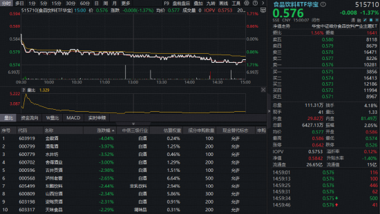 吃喝板块突遭寒流,白酒股领跌!食品饮料ETF华宝(515710)重挫1.71%,机构激辩:布局时刻到了吗?