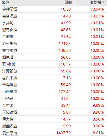 白酒板块创16个月来单日最高涨幅