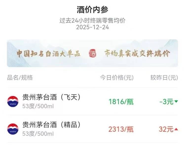临近岁末,消费市场的"烟火气"正在快速升腾。餐饮宴请增多,节庆礼赠与企业采购纷纷提前启动,多地烟酒店主理人都能明显感觉到今年12月的客流变 化。"这个月节庆较多,从中旬开始,晚上来买酒的人多了起来。"一位广东白酒经销商形容今年的节奏"像被一键点亮"。这一轮由真实消费带动的需求释 放,正成为年末白酒市场最重要的现实背景。 在这样的氛围下,12月23日茅台非标产品率先迎来一波集体上涨。来自多个酒价平台与渠道反馈的信息显示,精品茅台、茅台十五年、1000ml飞天茅台、 散花飞天等多个产品在23日出现不同幅度的价格提升,涨幅从10元到160元不等,其中"十五年"单日上涨超过200元。 经销商普遍给出的判断较为一致:节庆旺季临近,高端礼赠场景提前启动,需求自然抬升;与此同时,今年非标产品的供应节奏本就偏紧,在茅台明确强调 以需求为导向、依据终端动销科学投放后,不少酒商的库存较少,需求增量便更易在批价端体现出来。 这种结构性需求的增强,带动的不仅是非标产品的销情,也促使飞天茅台等高端白酒在终端市场的流通速度有所加快。 根据新浪财经"酒价内参"12月24日的最新统计,覆盖约200家经销渠道的数据表明,飞天茅台终端成交均价为 ...