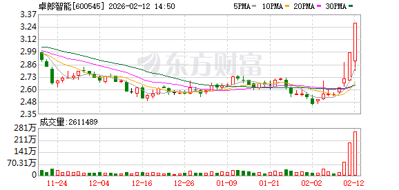 Group 1 - The core point of the article is that Zhuolang Intelligent (SH600545) reached its daily limit with a price of 3.28 yuan, reflecting a 10.07% increase and a total market capitalization of 5.864 billion yuan on February 12, 2026 [1][2]. Group 2 - The reasons for the stock's surge include governance optimization, a share buyback plan, and business expansion attempts. The company has recently worked on governance optimization, including the cancellation of the supervisory board and the revision of 22 governance systems, which enhances decision-making efficiency [2]. - The company plans to repurchase 50 million to 100 million yuan worth of shares for cancellation, indicating management's confidence in future development and sending a positive signal to the market [2]. - The textile industry, a significant traditional pillar of China's economy, is expected to see a recovery due to gradual economic recovery and market demand release, with some stocks in the textile manufacturing sector also rising on February 12, creating a sectoral linkage effect [2]. - Technical indicators such as the MACD forming a golden cross or a breakout in the BOLL channel may attract technical investors, contributing to the stock price increase [2]. - There may have been inflows of institutional funds into the stock on that day, which helped push the stock to its limit [2].