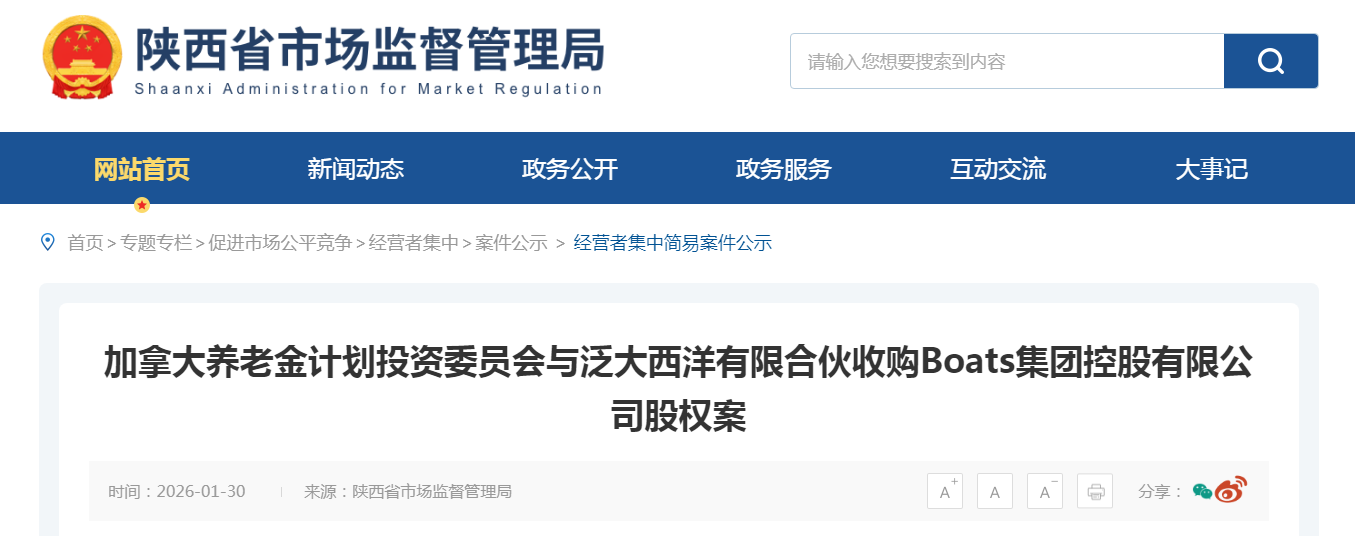 加拿大养老金计划投资委员会与泛大西洋有限合伙收购Boats集团控股有限公司股权案