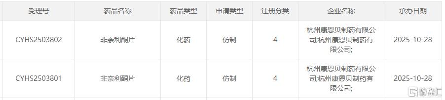 Core Insights - Hangzhou Kang En Bei Pharmaceutical's application for the generic version of Finerenone has been accepted, with 30 companies currently competing for the first generic approval [1][7][10] - Finerenone, originally developed by Bayer, is used for treating type 2 diabetes-related chronic kidney disease (CKD) and heart failure, showing strong market performance with sales exceeding 410 million yuan in the first half of 2025, a 135.98% year-on-year increase [4][10] - The original patent for Finerenone is set to expire in February 2028, with 23 companies currently filing for a type 3 patent declaration, indicating they cannot market the product until the patent expires [10][13] Company Developments - Kang En Bei Pharmaceutical has successfully obtained approvals for over 50 products, with several being the first to pass consistency evaluations, including Sulfamethoxazole and Amisulpride solutions [16] - The competition for Finerenone has intensified, with 37 companies having completed bioequivalence (BE) trials and over 20 more currently conducting BE trials [13][16] Market Dynamics - The strong sales performance of Finerenone has attracted numerous domestic pharmaceutical companies to enter the market, leading to a competitive landscape [4][7] - The ongoing patent challenges and the competitive nature of the generic drug market suggest a dynamic environment for both original and generic manufacturers [10][13]
