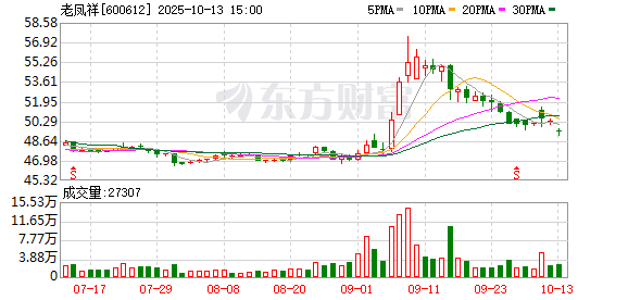 资料显示,老凤祥股份有限公司位于上海市徐汇区凯旋路2588号-6临,成立日期1992年11月11日,上市 日期1992年8月14日,公司主营业务涉及黄金珠宝首饰、工艺美术品、笔类文具制品的生产经营及销 售。主营业务收入构成为:珠宝首饰84.55%,黄金交易14.84%,其他(补充)0.29%,笔类0.25%,工艺品 销售0.06%,其他0.01%。 老凤祥所属申万行业为:纺织服饰-饰品-钟表珠宝。所属概念板块包括:社保重仓、高派息、茅概念、 黄金股、首发经济等。 截至6月30日,老凤祥股东户数4.87万,较上期增加15.31%;人均流通股0股,较上期增加0.00%。2025 年1月-6月,老凤祥实现营业收入333.56亿元,同比减少16.52%;归母净利润12.20亿元,同比减少 13.07%。 10月14日,老凤祥盘中上涨2.10%,截至10:33,报50.54元/股,成交7316.84万元,换手率0.46%,总市 值264.38亿元。 资金流向方面,主力资金净流入133.66万元,特大单买入0.00元,占比0.00%,卖出134.17万元,占比 1.83%;大单买入1081.67万元,占比14.78%,卖 ...