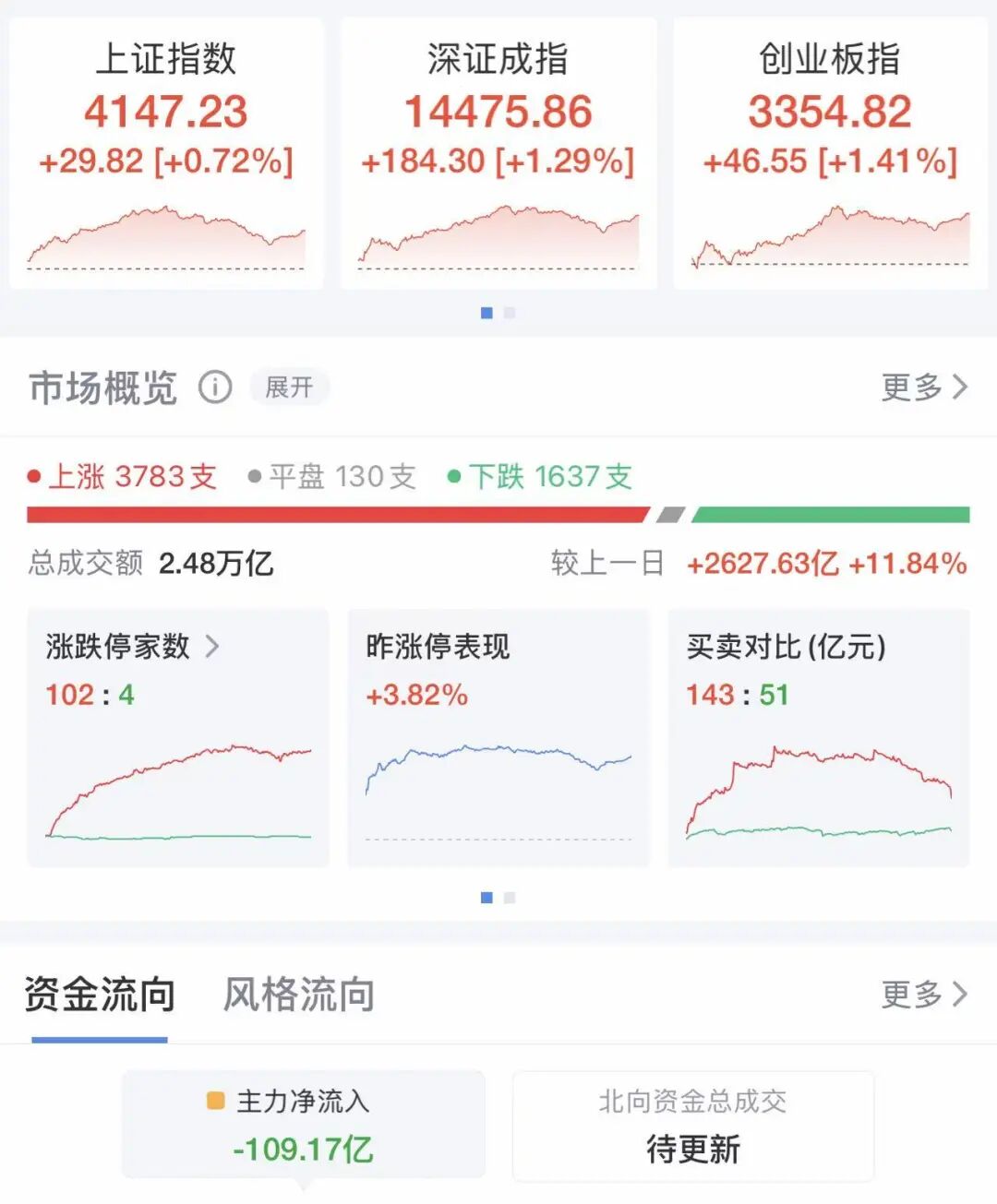 A股全线飘红,近3800股上涨,连续两天超百股涨停!影视股再跌,博纳、横店两连跌停