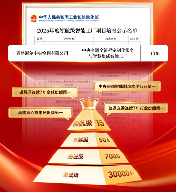 代表中国制造业智能化最高标准!海尔中央空调入选国家首批“领航级智能工厂”