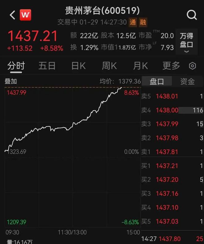 贵州茅台大涨8%,这只白酒股“地天板”