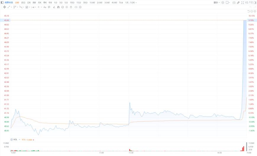 最后5分钟直线拉升!闻泰科技尾盘逼近涨停