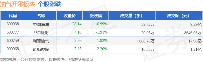 石油石化行业资金流入榜:中国石油、洲际油气等净流入资金居前
