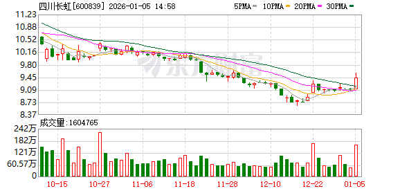 每经AI快讯,1月5日,四川长虹短线拉升涨近4%,成交额超12.6亿元。 (文章来源:每日经济新闻) ...