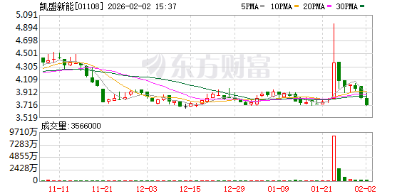 凯盛新能跌超3% 预计2025年净亏损扩大至2.9亿元