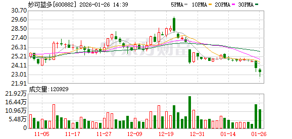 (责任编辑:徐自立) 中国经济网北京1月26日讯 妙可蓝多(600882.SH)今日收报23.33元,跌幅1.77%。妙可蓝多1月23 日收报23.75元,跌幅3.34%。 中国经营网今日报道《突发!妙可蓝多创始人被免职》显示,2026年1月25日晚间,妙可蓝多发布 公告称,公司副董事长、总经理以及法定代表人柴琇离任。妙可蓝多行政总经理蒯玉龙接任总经理一 职,并担任公司法定代表人。《中国经营报》注意到,柴琇原定任期到期日为2027年11月17日,此次 离任原因为"免职"。 ...