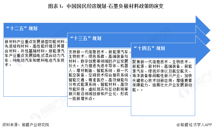 转自:前瞻产业研究院 以下数据及分析来自于前瞻产业研究院石墨负极材料行业研究小组发布的《中国锂电池石墨负极材料行 业发展前景预测与投资战略规划分析报告》 石墨负极材料行业主要上市公司:贝特瑞(920185);杉杉股份(600884);璞泰来(603659);翔丰华(300890);尚 太科技(001301);国民技术(300077);中科电气(300035);科达制造(600499)等 本文核心数据:中国石墨负极材料国家政策汇总;中国石墨负极材料各省市政策汇总;各省市石墨负极材 料发展目标 1、政策历程图 "十二五"以来,国家支持发展新材料、新能源汽车等行业,石墨负极材料属于新材料行业,是国家重点 发展的产品之一。新能源汽车行业是石墨负极材料的重点应用领域之一,国家支持新能源汽车行业的发 展,也间接带动了石墨负极材料的发展。 2、国家层面政策汇总及解读 ——国家层面石墨负极材料行业政策汇总 2016年以来,《轻工业发展规划(2016-2020年)》《关于推动能源电子产业发展的指导意见》《锂电池行 业规范条件(2024年本)》等政策相继出台,鼓励发展石墨负极材料,同时规范行业生产经营和进出口。 中国石墨负极材料 ...