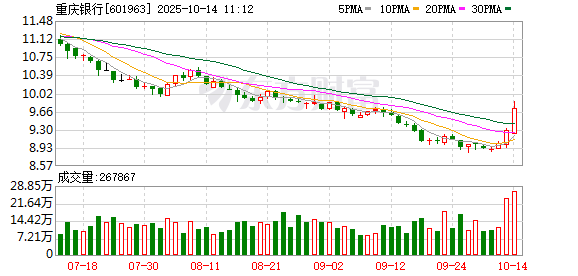 城商行板块10月14日涨2.39%,重庆银行领涨,主力资金净流出2867.55万元
