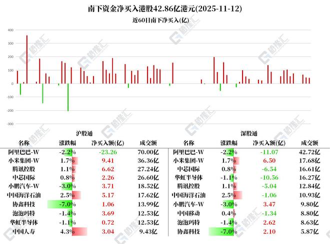 图解丨南下资金净卖出阿里超34亿港元,净买入小米16亿