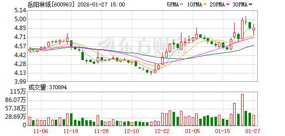 岳阳林纸(600963.SH)发预亏,预计2025年归母净亏损2亿元-2.6亿元