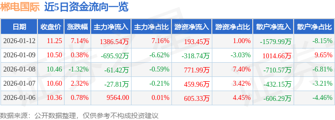 郴电国际(600969)1月12日主力资金净买入1386.54万元