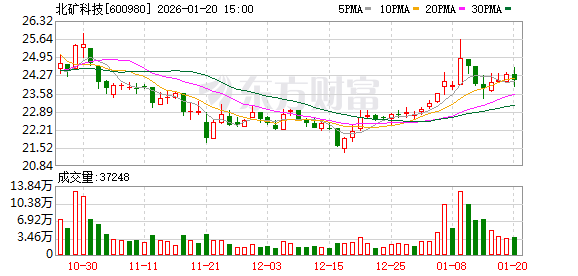 北矿科技:截至2026年1月20日公司股价收盘价为24.06元/股