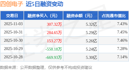 四创电子:11月3日融资净买入307.32万元,连续3日累计净买入745.24万元