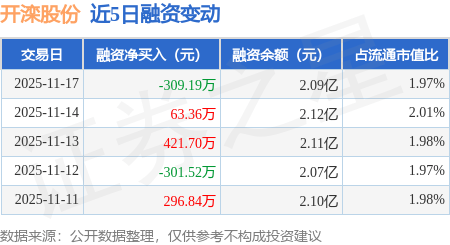 开滦股份:11月17日融券净卖出1400股,连续3日累计净卖出3000股