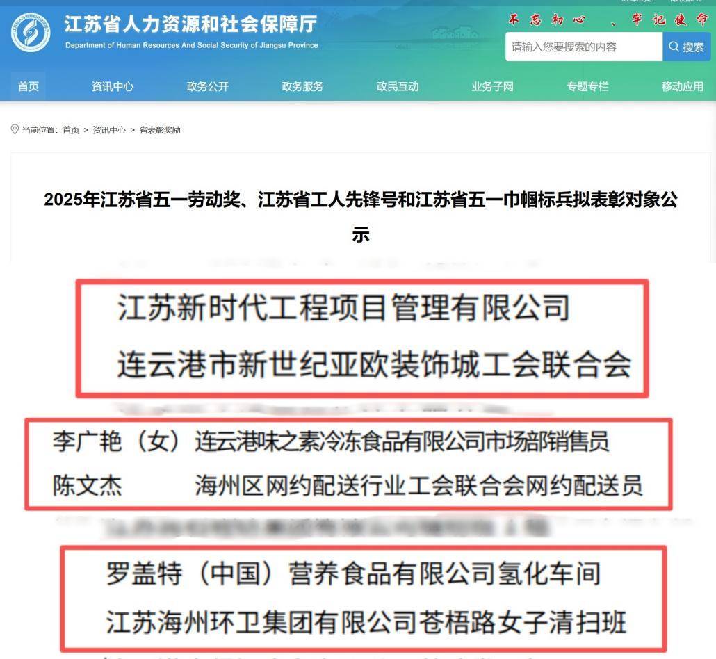 连云港海州4家单位2名个人 入围2025年江苏省五一劳动奖等拟表彰名单