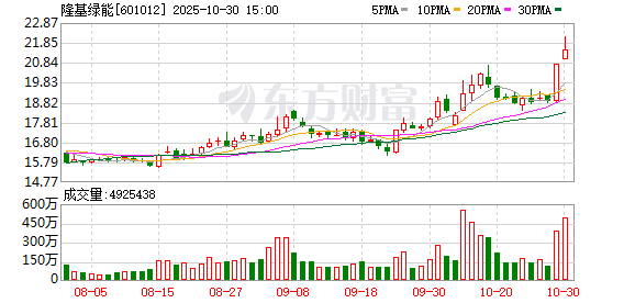 10月30日,隆基绿能大宗交易成交50万股,成交额1075.5万元,占当日总成交额的0.1%,成交价21.51 元,较市场收盘价21.51元持平。 | 反票垫五1品 | | | | | | | | | --- | --- | --- | --- | --- | --- | --- | --- | | 交易日期 | 证券简称 | 证券代码 | 成交价(元) 成交金额(万元) 成交量( *) 买入营业部 | | | 卖出营业部 | 是否为专场 | | 025-10-30 | 障基绿能 | 601012 | 21.51 50 | 1075.5 | 公司或者對學家 | 用意表清透露股份 | 3 | ...