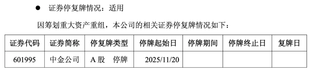 中金公司,继续停牌