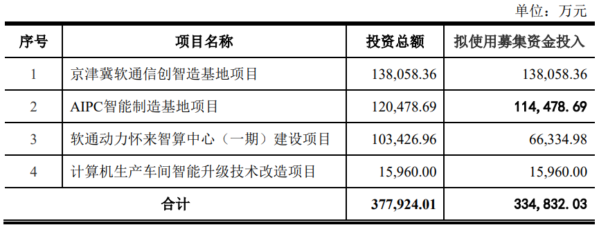软通动力11月11日披露的2025年度向特定对象发行股票募集说明书(修订稿)显示,公司本次向特定对象发行募集资金总额 不超过人民币334,832.03万元(含本数),扣除发行费用后的募集资金净额将用于京津冀软通信创智造基地项目、AIPC智能制 造基地项目、软通动力怀来智算中心(一期)建设项目、计算机生产车间智能升级技术改造项目。 本次发行的股票种类为境内上市的人民币普通股(A股),每股面值为人民币1.00元。 中国经济网北京11月13日讯软通动力(301236)(301236.SZ)昨晚发布关于向特定对象发行股票申请获得深圳证券交易所上 市审核中心审核通过的公告。 公司本次向特定对象发行股票的发行对象不超过35名(含),为符合中国证监会规定条件的特定投资者,包括符合规定条件 的证券投资基金管理公司、证券公司、信托公司、财务公司、保险机构投资者、合格境外机构投资者,以及符合中国证监 会规定的其他法人、自然人或其他合格的投资者。 公司于2025年11月12日收到深交所出具的《关于软通动力信息技术(集团)股份有限公司申请向特定对象发行股票的审核中 心意见告知函》。深交所上市审核中心对公司向特定对象发行股票的申请文件 ...