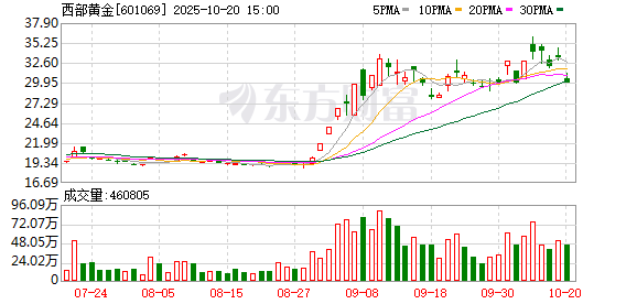 具体来看,今日上榜的营业部中,沪股通为第一大买入营业部及第一大卖出营业部,买入金额为 7485.29万元,卖出金额为1.09亿元,合计净卖出3372.35万元。 资金流向方面,今日该股主力资金净流出9961.66万元,其中,特大单净流出7803.11万元,大单资金净 流出2158.55万元。近5日主力资金净流出3.34亿元。 融资融券数据显示,该股最新(10月17日)两融余额为3.98亿元,其中,融资余额为3.95亿元,融券余 额为320.29万元。近5日融资余额合计减少854.23万元,降幅为2.12%。融券余额合计增加101.95万元, 增幅46.69%。 西部黄金(601069)今日下跌9.80%,全天换手率5.19%,成交额14.01亿元,振幅4.54%。龙虎榜数据显 示,沪股通净卖出3372.35万元,营业部席位合计净卖出3124.92万元。 上交所公开信息显示,当日该股因日跌幅偏离值达-10.43%上榜,沪股通净卖出3372.35万元。 证券时报·数据宝统计显示,上榜的前五大买卖营业部合计成交3.94亿元,其中,买入成交额为1.64亿 元,卖出成交额为2.29亿元,合计净卖出6497.27万元。 ...