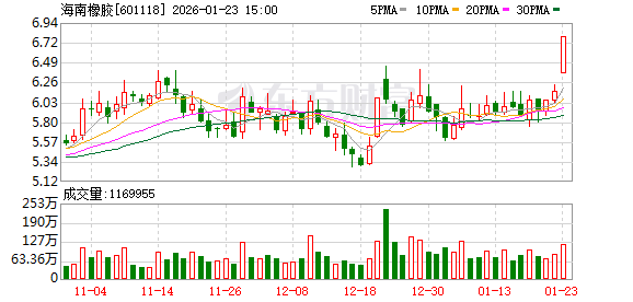 海南橡胶涨停,沪股通龙虎榜上净买入4481.20万元
