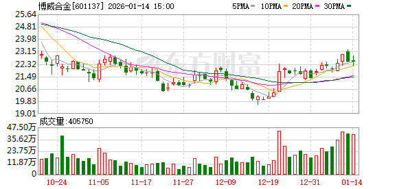 | 证券代码:601137 | 证券简称:博威合金 | 公告编号:临 2026-014 | | --- | --- | --- | | 债券代码:113069 | 债券简称:博 23 转债 | | 宁波博威合金材料股份有限公司关于 实施"博 23 转债"赎回暨摘牌的第五次提示性公告 本公司董事会及全体董事保证本公告内容不存在任何虚假记载、误导性陈述 或者重大遗漏,并对其内容的真实性、准确性和完整性承担法律责任。 重要内容提示: 截至 2026 年 1 月 14 日收市后,距离 2026 年 1 月 16 日("博 23 转债"最后 交易日)仅剩 2 个交易日,1 月 16 日为"博 23 转债"最后一个交易日。 最后转股日:2026 年 1 月 21 日 截至 2026 年 1 月 14 日收市后,距离 2026 年 1 月 21 日("博 23 转债"最后 转股日)仅剩 5 个交易日,1 月 21 日为"博 23 转债"最后一个转股日。 本次提前赎回完成后,"博 23 转债"将自 2026 年 1 月 22 日起在上海证券交易 所摘牌。 投资者所持可转债除在规定时限内通过二级市场继续交易或按照 14.68 ...
