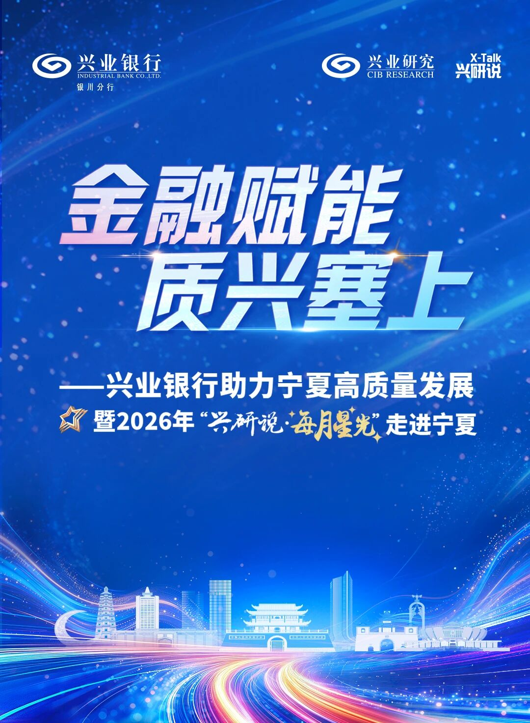 (来源:宁夏金融工作) 2026年是闽宁协作三十周年,为准确把握宁夏经济发展重大战略机遇,积极做好福建金融机构在宁服务工作,切实推动闽宁金融协作更加精准、更有实 效,1月27日,兴业银行银川分行与兴业研究在银川联合举办"金融赋能 质兴塞上"——兴业银行助力宁夏高质量发展暨2026年"兴研说·每月星光"走进宁夏 活动。区市两级金融办、国资委、工业和信息化厅(局)、农业农村厅(局)等政府部门相关领导,多家区市属重点国企负责人,兴业银行银川分行、兴 业研究相关负责人和百余家企业客户代表参与本次活动。 兴业银行银川分行党委书记、行长傅健,兴业研究党委书记、院长刘健为活动致辞。兴业银行首席经济学家、兴业研究学术评审委员会主席鲁政委发表主 旨演讲。 傅健表示,自2017年扎根宁夏以来,兴业银行银川分行始终把自身发展深深融入这片热土,用具体实践回应着宁夏高质量发展的需求。近两年,面对内外 部形势,分行按照"挺进主战场、做主流业务"的工作思路,围绕金融"五篇大文章",持续深化"区域+行业"经营,聚焦区内优势行业、重点产业,细化客 户建设和资产构建主攻方向,以培育壮大核心客户、机构客户为重点,加强客户建设和大类资产项目储备,持 ...