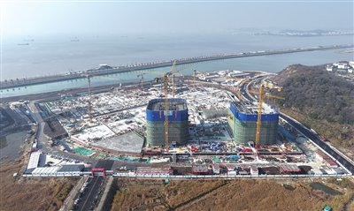 舟山自贸中心建设项目 地下室主体结构冲出“正负零”