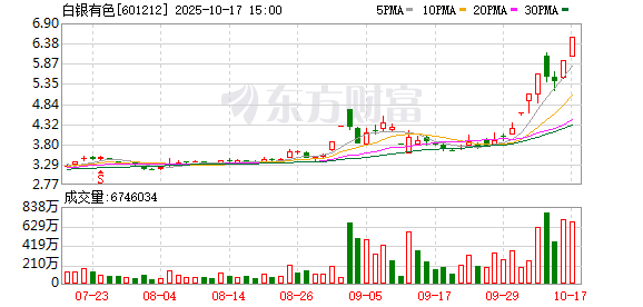 当前,有色金属行业整体处于牛市状态。对于白银走势,有业内专家向《华夏时报》记者表示,白银具 备显著的"强商品属性、弱金融属性"特征。与黄金相比,白银具有更强的工业属性,在新能源、5G等 产业发展中需求潜力更大。在黄金价格持续上涨的带动下,白银也具备显著的补涨机会。 而其实,白银有色业务布局甚广,白银业务占比较小。其股价上涨背后,除了市场对黄金、白银、稀土 等有色金属领域的持续看涨,也有白银有色在黄金领域的持续布局等方面的利好。节前,白银有色曾宣 布拟出资15亿元设立黄金子公司,布局黄金全产业链等利好消息。 但值得留意的是,近年来,白银有色在有色金属行业爆发期业绩不升反降,上半年归母净利润为-2.17 亿元,同比大幅下降1859.82%;并暴露了多项管理问题,多次被披露信披违规,存在伪造销售单据侵 占公司阴极铜产品、990吨锌锭被盗等恶性事件。 节后股价连涨为哪般? 10月17日,白银有色股价表现再次出现涨停。东方财富交易数据显示,截至2025年10月17日收盘,白银 有色股价为6.53元/股,较前一交易日上涨0.59元,涨幅为9.93%。 实际上,"双节"假期之后,白银有色股价已经在7个交易日内实现5个涨停板 ...