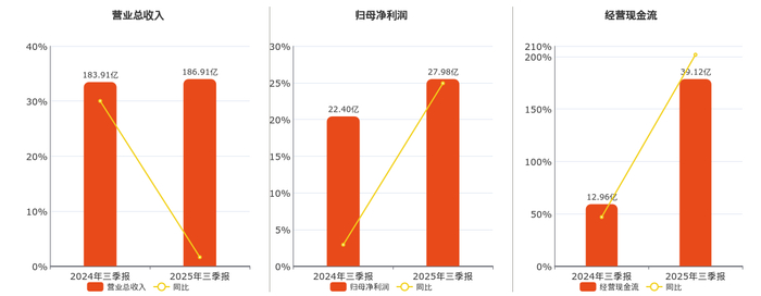 Core Insights - The company reported a total operating revenue of 18.691 billion yuan and a net profit attributable to shareholders of 2.798 billion yuan for the third quarter of 2025 [2] - The company experienced a significant decline in diluted earnings per share, which decreased by 0.16 yuan year-on-year, representing a 60.78% drop compared to the same period last year [5] Financial Performance - The latest cash flow from operating activities was 3.912 billion yuan [2] - The asset-liability ratio stands at 30.22% [4] - The gross profit margin is 22.47%, which is a decrease of 0.34 percentage points from the previous quarter [4] - The return on equity (ROE) is reported at 9.71% [4] Efficiency Metrics - The diluted earnings per share is 0.10 yuan, down from the previous year's same report period [5] - The total asset turnover ratio remained flat year-on-year, with a slight decrease of 0.50% [5] - The inventory turnover ratio is 11.78 times, which is a decrease of 0.65 times compared to the same period last year, reflecting a 5.23% decline [5] Shareholder Information - The number of shareholders is 184,700, with the top ten shareholders holding 5.637 billion shares, accounting for 66.80% of the total share capital [5] - The largest shareholder is Du Jiangtao, holding 31.95% of the shares [5]